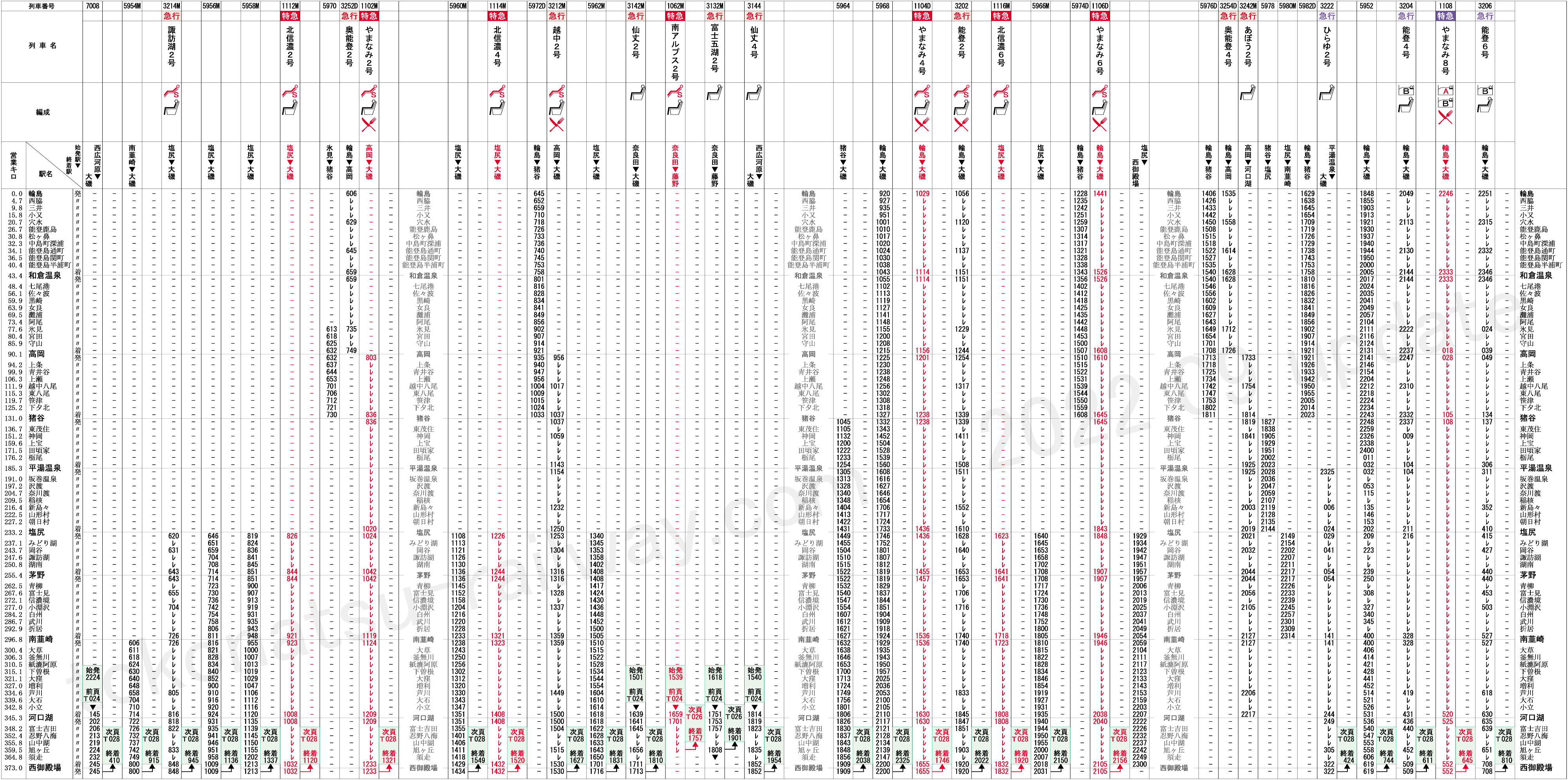 T032 輪島本線(輪島→高岡→塩尻→西御殿場)